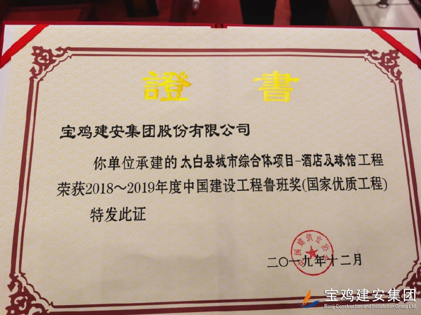 睽違三十載,喜開二度梅。1210日,從北京會(huì)議中心傳來喜訊,由寶雞建安集團(tuán)承建的太白縣城市綜合體項(xiàng)目—酒店及球館工程,在全國(guó)建筑行業(yè)精品工程最高獎(jiǎng)項(xiàng)大比拼的激烈角逐中,力挫群雄,脫穎而出,最終摘得2018--2019年度中國(guó)建設(shè)工程魯班獎(jiǎng)(國(guó)家優(yōu)質(zhì)工程)桂冠,這也使寶雞建安集團(tuán)成為繼法門寺重建工程獲得寶雞第一個(gè)建筑魯班獎(jiǎng)后,時(shí)隔近30年再次奪得“魯班獎(jiǎng)”的企業(yè),從而書寫了建筑行業(yè)頂級(jí)獎(jiǎng)“梅開二度”的傳奇!