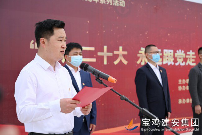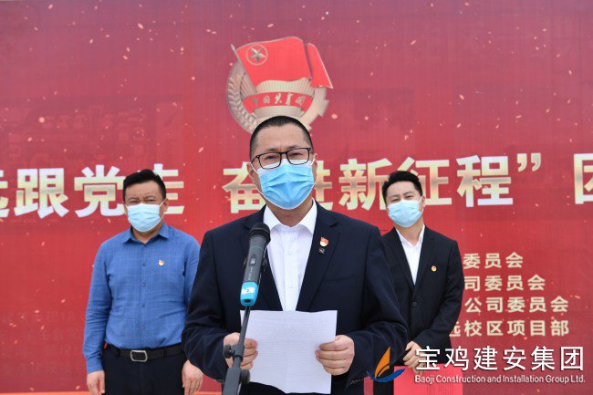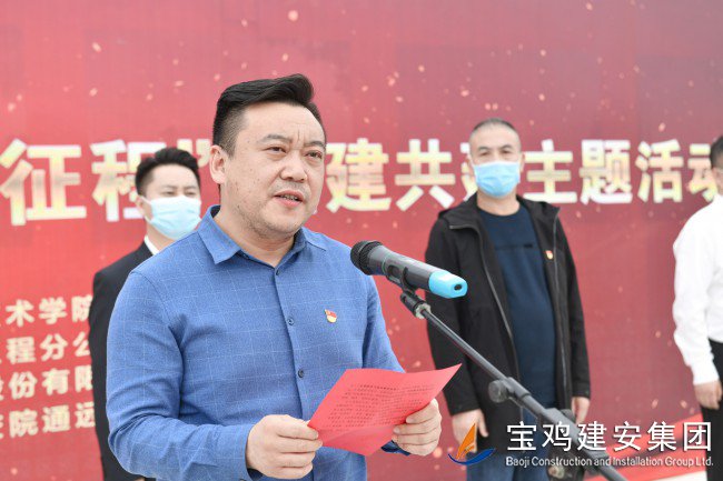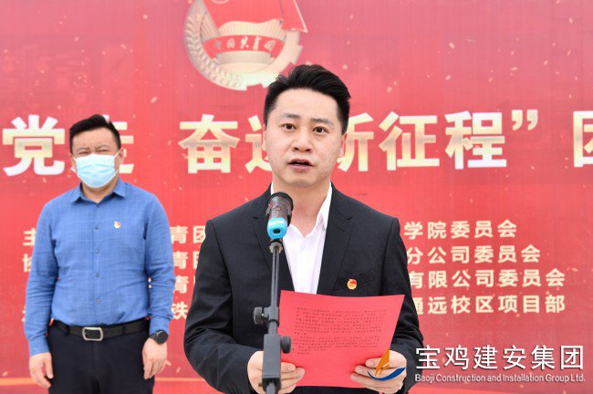李軍鋒代表參建單位團(tuán)組織作表態(tài)發(fā)言,提出青年是時(shí)代的希望,共青團(tuán)員和廣大青年前赴后繼、勇當(dāng)先鋒,書寫了中國青年運(yùn)動(dòng)的華章。參建單位將以本次黨建帶動(dòng)團(tuán)建為契入點(diǎn),充分發(fā)揮引領(lǐng)作用,帶領(lǐng)廣大青年職工砥礪奮進(jìn),大道遠(yuǎn)行,以項(xiàng)目建設(shè)發(fā)展為目標(biāo),高質(zhì)量、高標(biāo)準(zhǔn)、高要求完成陜西交通職業(yè)技術(shù)學(xué)院通遠(yuǎn)校區(qū)建設(shè)任務(wù)。