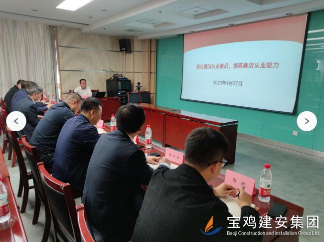 為認(rèn)真貫徹落實習(xí)近平總書記關(guān)于全面從嚴(yán)治黨重要指示批示精神,深刻汲取郭振山、頓小建嚴(yán)重違紀(jì)違法問題教訓(xùn),切實維護(hù)風(fēng)清氣正的政治生態(tài),全面建設(shè)廉政黨風(fēng),寶雞建安集團(tuán)公司黨委于4月27日下午在22樓第三會議室舉辦了黨風(fēng)廉政建設(shè)工作會議。