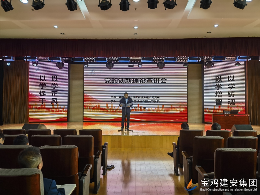 為認(rèn)真學(xué)習(xí)貫徹習(xí)近平新時(shí)代中國特色社會(huì)主義思想和黨的二十大精神,扎實(shí)深入推進(jìn)主題教育。11月28日下午,在寶雞建安集團(tuán)股份有限公司24樓多功能廳舉辦了一場(chǎng)“學(xué)習(xí)貫徹講話精神、著力推動(dòng)高質(zhì)量發(fā)展”黨的創(chuàng)新理論宣講會(huì)。本次宣講會(huì)由中共寶雞市住房和城鄉(xiāng)建設(shè)局黨組主辦,寶雞建安集團(tuán)股份有限公司黨委承辦,局機(jī)關(guān)和局屬27個(gè)企事業(yè)單位200多名黨員干部參加了宣講會(huì)。 寶雞建安集團(tuán)公司黨委副書記胥永寧在致詞中,感謝局黨組對(duì)寶雞建安集團(tuán)公司的信任和大力支持,介紹了公司經(jīng)營生產(chǎn)情況和黨建工作開展情況,并邀請(qǐng)局系統(tǒng)各兄弟單位蒞臨指導(dǎo),加強(qiáng)學(xué)習(xí)交流,共同拓展工作思路,促進(jìn)各項(xiàng)工作更上一層樓。